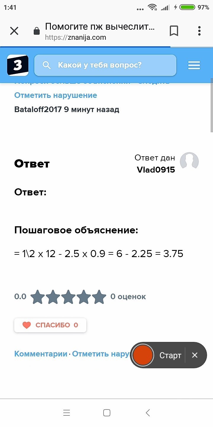 12 x 12 - 2.5 x 0.9 = 6 - 2.25 = 3.75