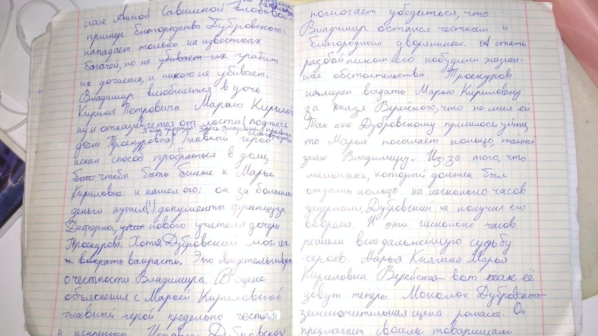 У нас в прошлом году была немного другая тема, просто описание Дубровского как благородного разбойника. Добавь ещё немного своих мыслей и все ок будет. Писала сама, получила 5+.