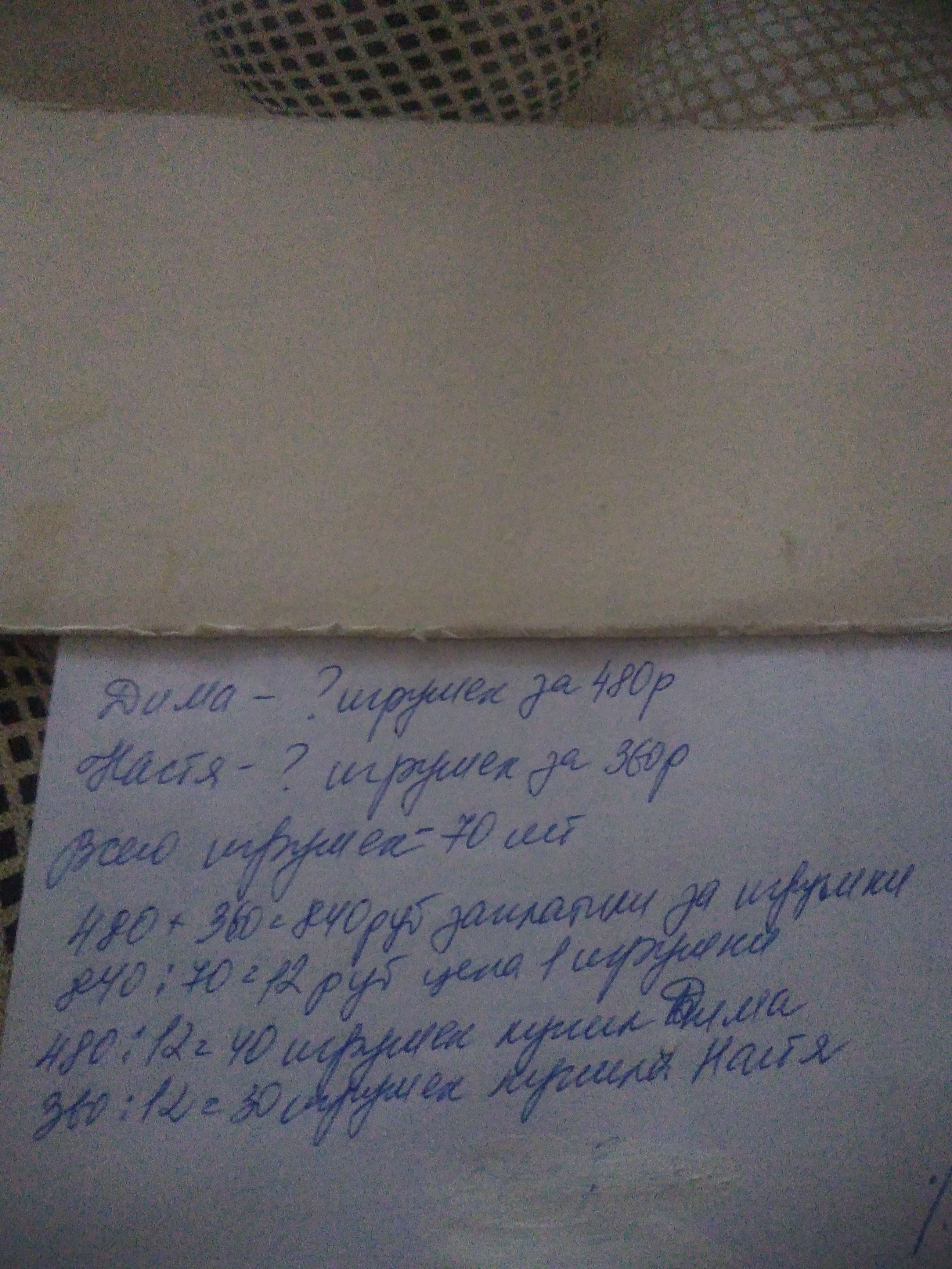дима и настя купили для ёлки 70 игушек по одинаковой цене дима уплатил за игрушки 480 р а настя 360 р сколько стоила одна игрушка сколько игрушек купил дима сколько игрушек купила настя запиши краткую запись решения и ответ