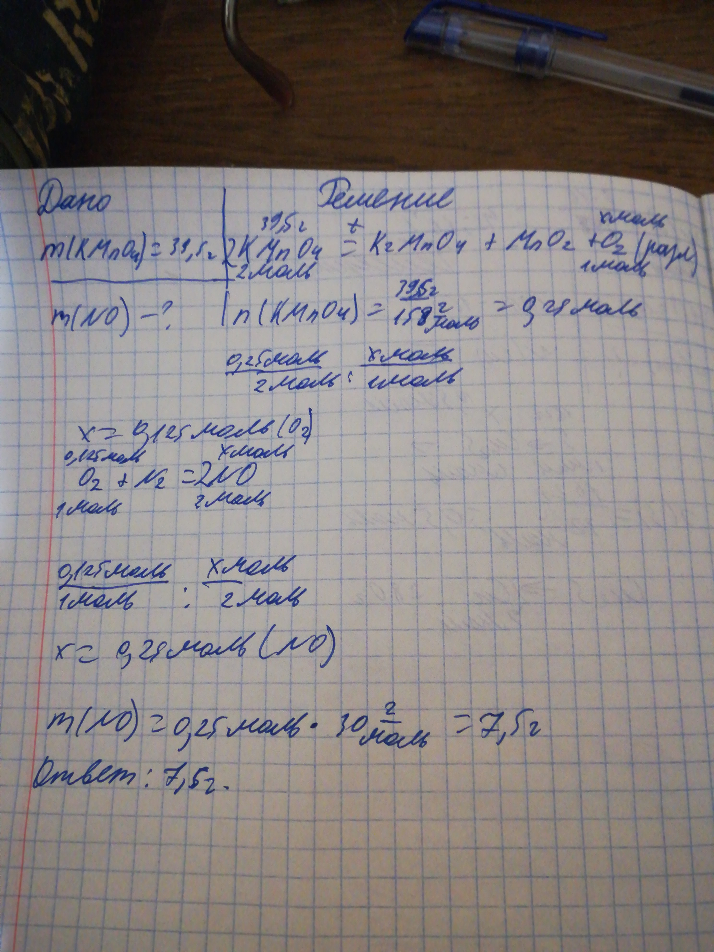 прореагировал с азотом, с образованием оксида азота (II) NO. Рассчитайте массу оксида