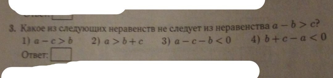 Я думал как в тесте тупо цифру))) Блин, тогда задача сложнее) Повторюсь, я просто в это выражение вместо букв цифры подставил разные, чтобы понять, какое выражение неверно. Ну, вот пример, условно: a-b>c. Подставляю: а=5, b=3, с=1 допустим. И теперь сверяем: