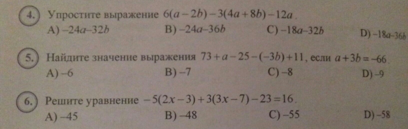 4. 6а-12b-12a-24b-12a= -18a-36b
