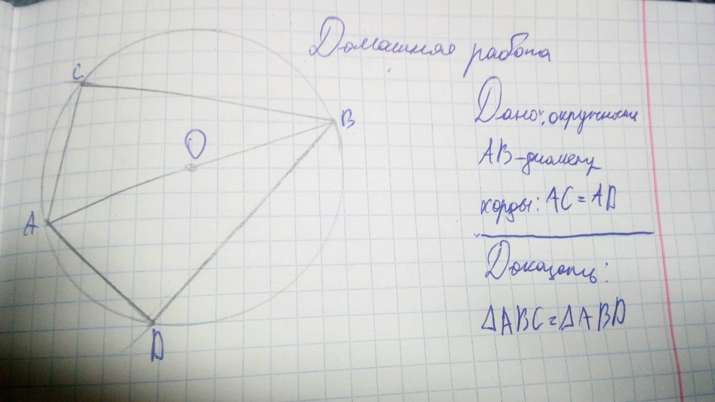 Т.к. треугольники ABC и ABD опираются на диаметр, то они прямоугольные.