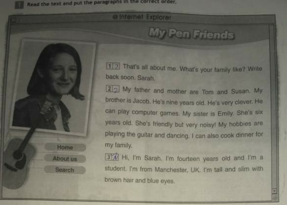 Это все о мнею Так выглядит моя семья. А как выглядит твоя? Напиши мне скоро. Сара