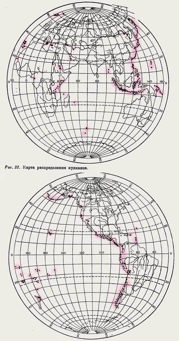 На карте эти районы обозначены розовым цветом.Это районы Анд,Кордильер,Гималаев,Килиманджаро,Дальний Восток,Сахалин,Индонезия.