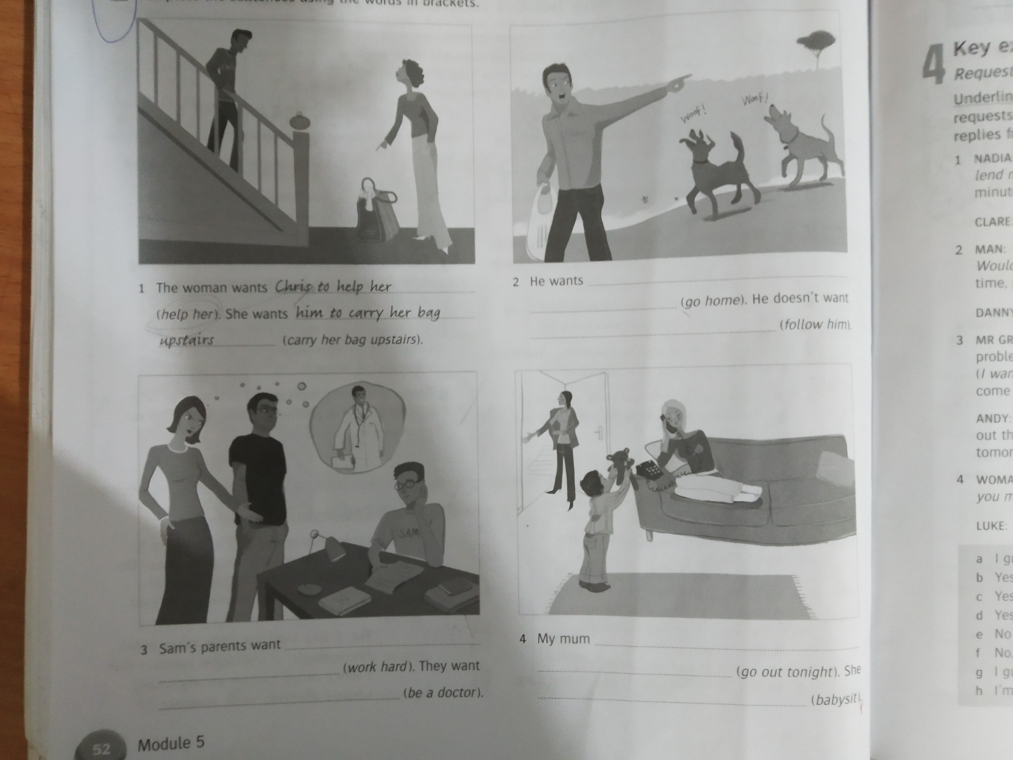 want /don't want someone to do something . Complete the sentence using the words in brackets .