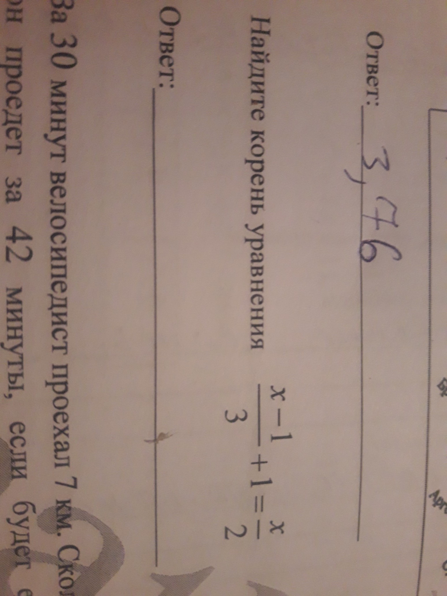 frac{x - 1}{3}  + 1 =  frac{x}{2}  \  frac{6(x - 1)}{3}   + 1 times 6 =  frac{6x}{2}  \ 2(x - 1) + 6 = 3x \ 2 x- 2 + 6 = 3x \ 2x - 3x =  - 4 \  - x =  - 4 \ x =  4