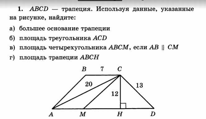 г) S=(BC+AH)*1/2CH