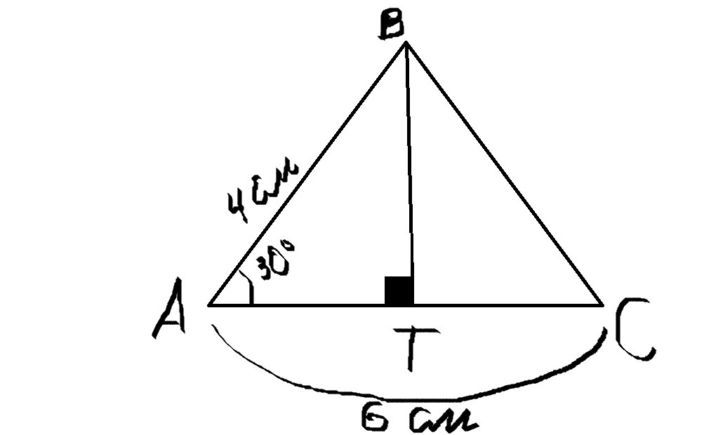 Проведем высоту ВТ, ΔАВТ - прямоугольный, ∠А=30°, ⇒ ВТ=1/2АВ=2 см.