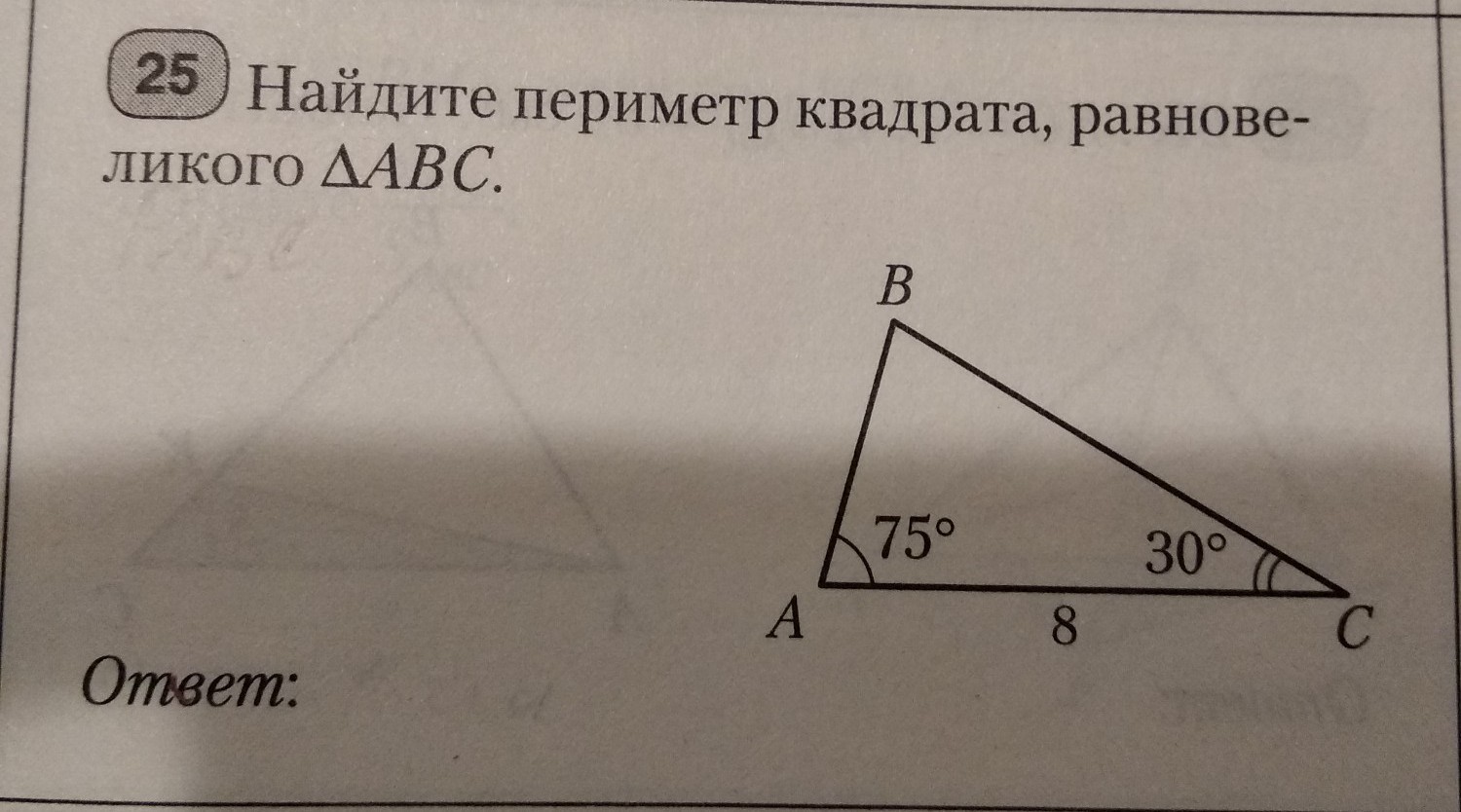 Найдём оставшийся угол 180-30-75=75, т е треугольник равнобедренный и вс=8.
