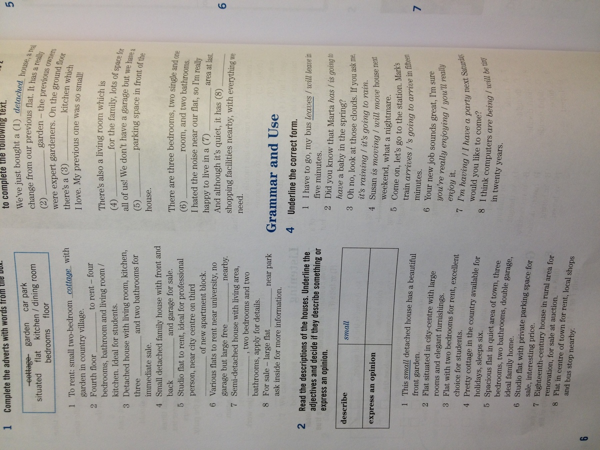 2. Describe: large, elegant, pretty, spacious, quiet, private, rural, local.