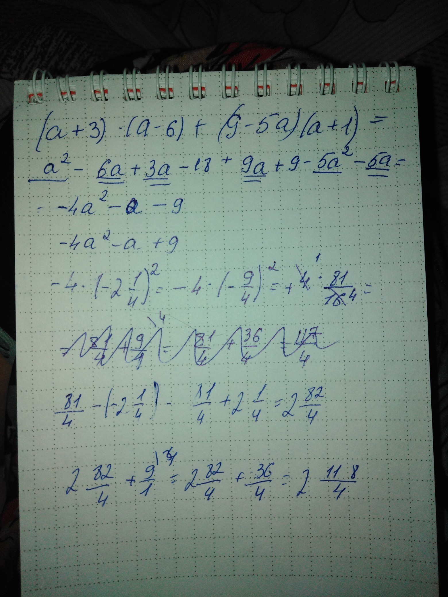 2. (а+3)*(а-6)+(9-5а)*(а+1),если а=- 2 целых 1/4