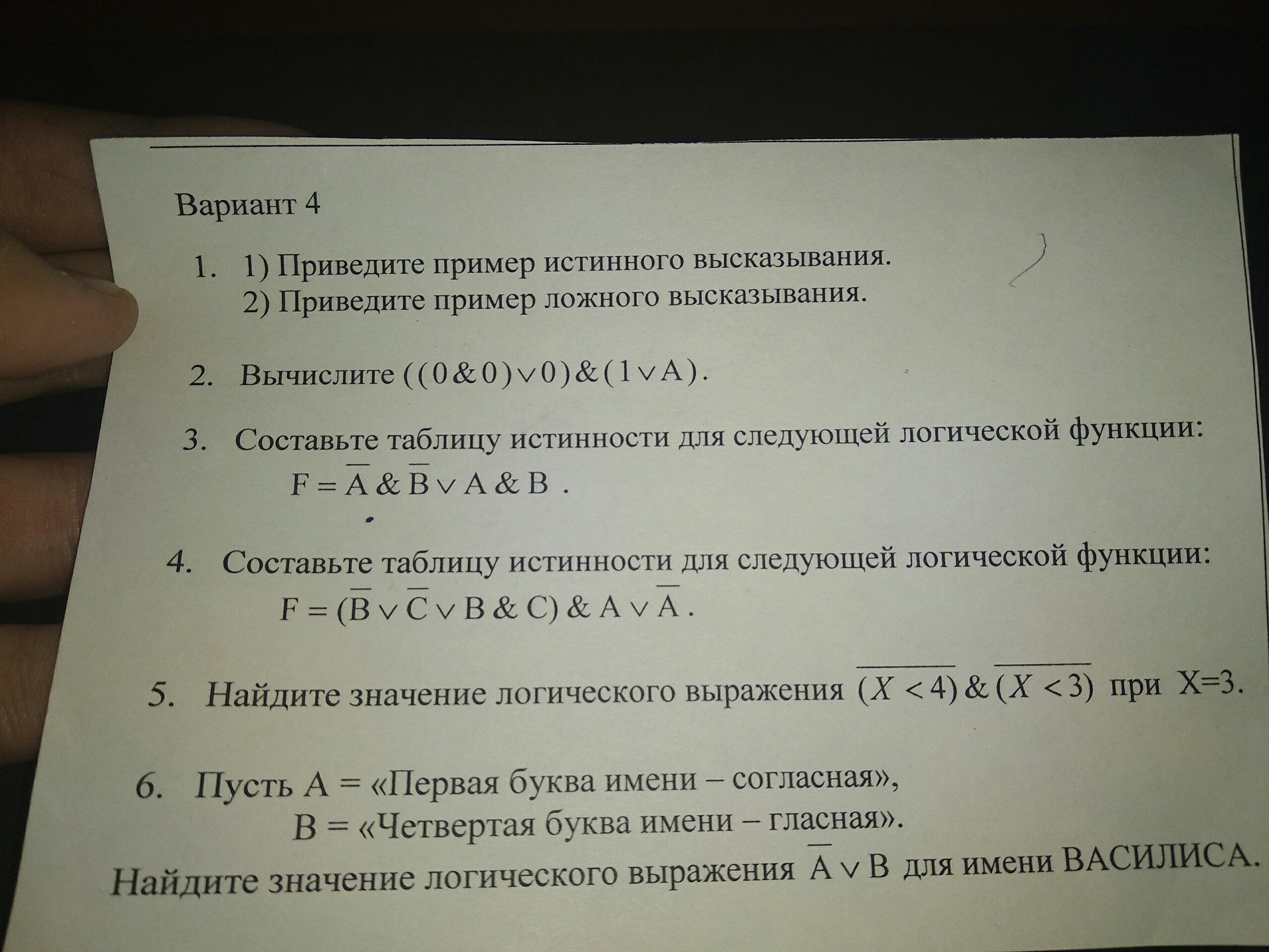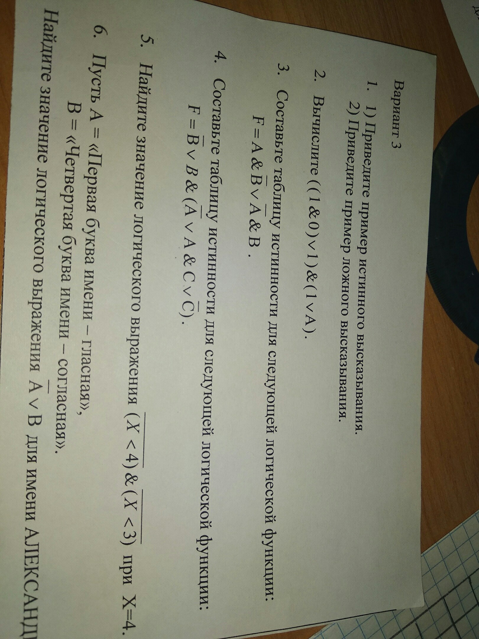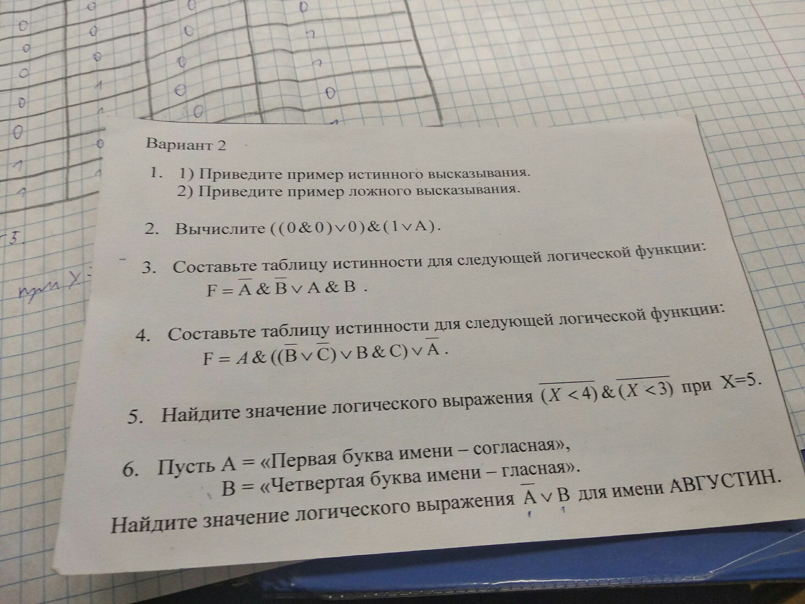 1. первый пример ¬0∨¬0=1 второй пример (1∨0)∧(0∨0)=0.