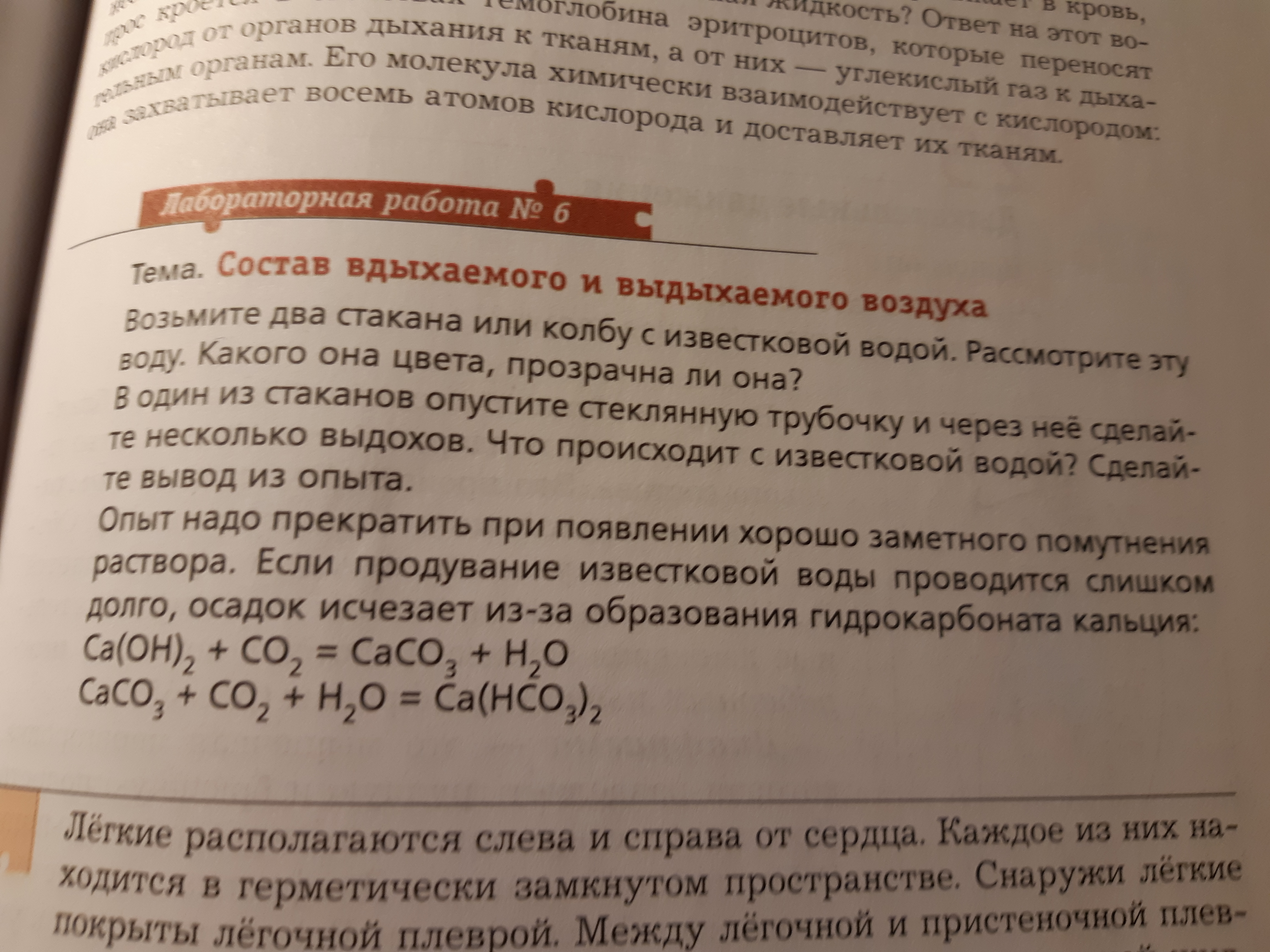 В результате химической реакции CO2(выдыхаемого человеком в процессе газообмена) и известковой водой получается белый осадок, и вода мутнеет.