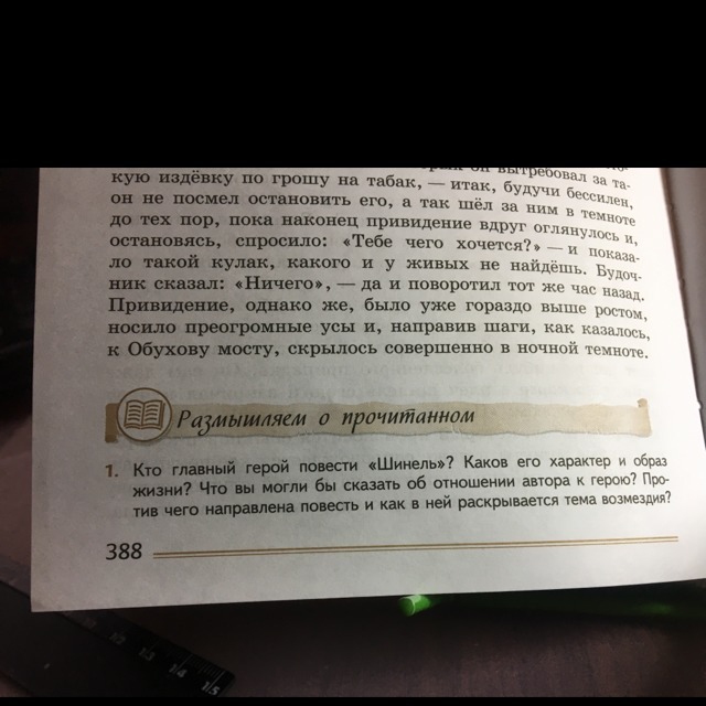 1. Главный герой повести "Шинель" - Акакий Акакиевич Башмачкин. Он робкий и пугливый человек, покорный и скромный, трудолюбивый и усердный. Он очень много работает, берет переписывать документы на дом, он не представляет свою жизнь без переписывания. Он никогда не пропускал службу и не позволял себе развлечения.