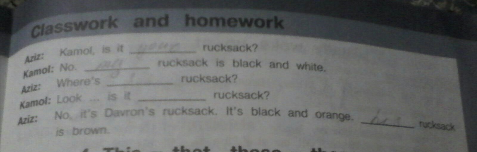 ОЧЕНЬ СРОЧНО !!!! пожалуйста помогите вставить нужные слова в диалог (на английском языке ) слова : your , my , his