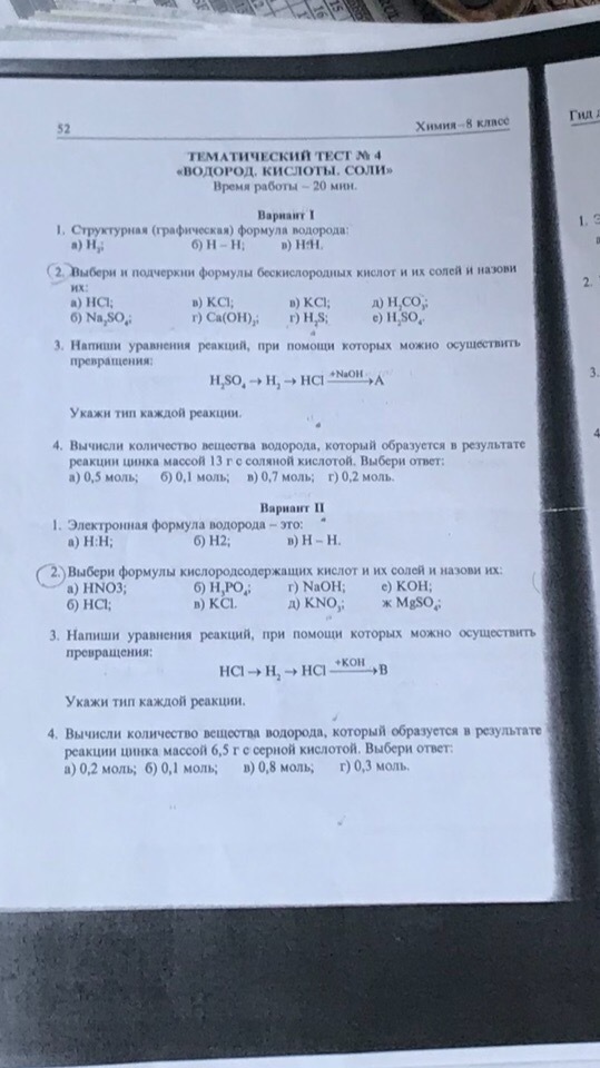 Решите пожалуйста тест по химии,тема:"Водород". Всего 4 задания.