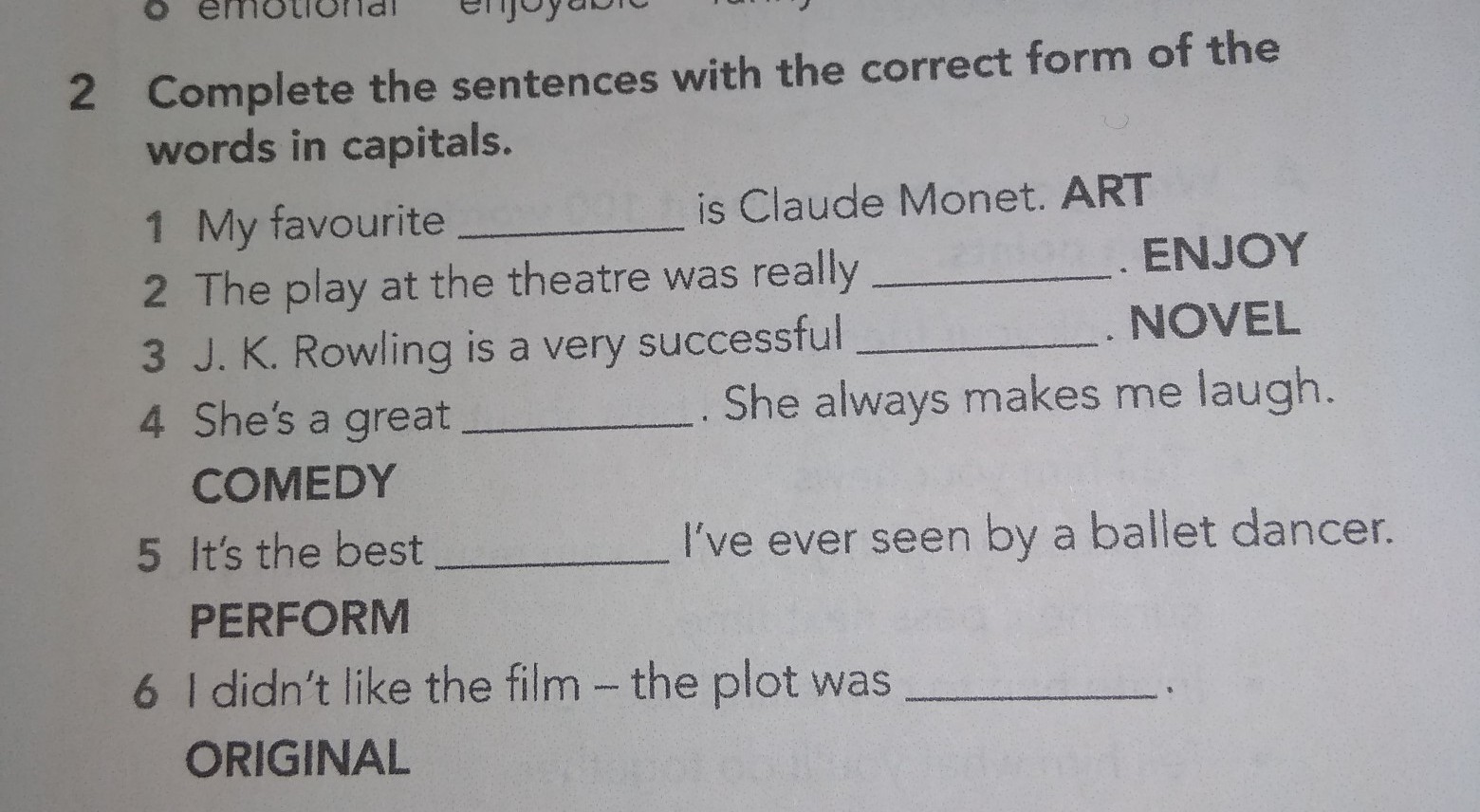 1 artist 2 enjoyable 3 novelist 4 comedian 5 performance 6 unoriginal