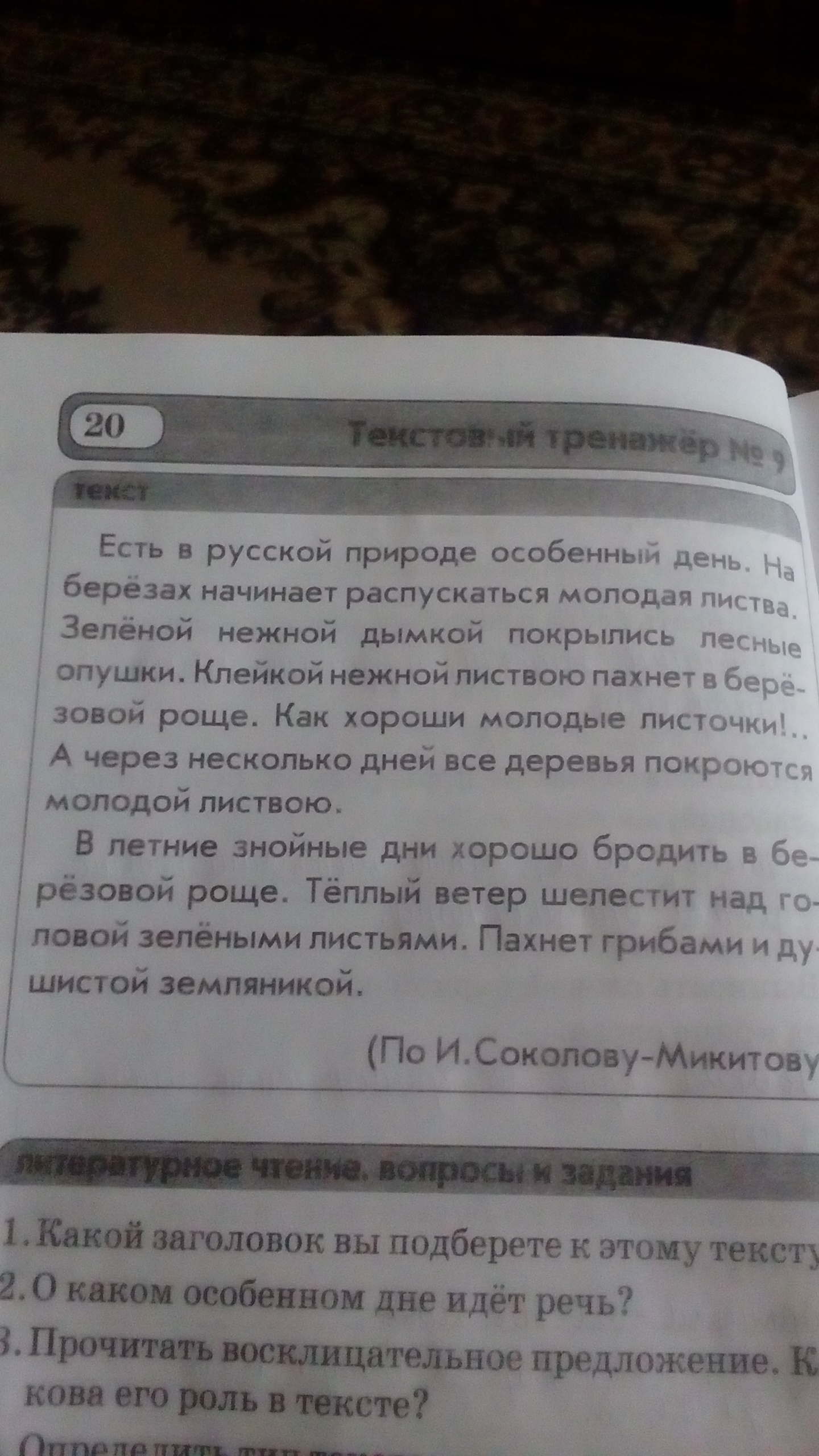 3вопрос: речь идёт о том какие же свежие молодые листья выросли на ветвях берёзы весной!