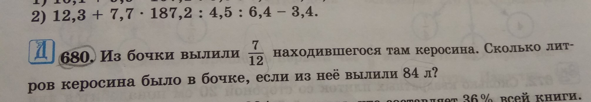 1)12-7=5- такая часть осталась в бочке;