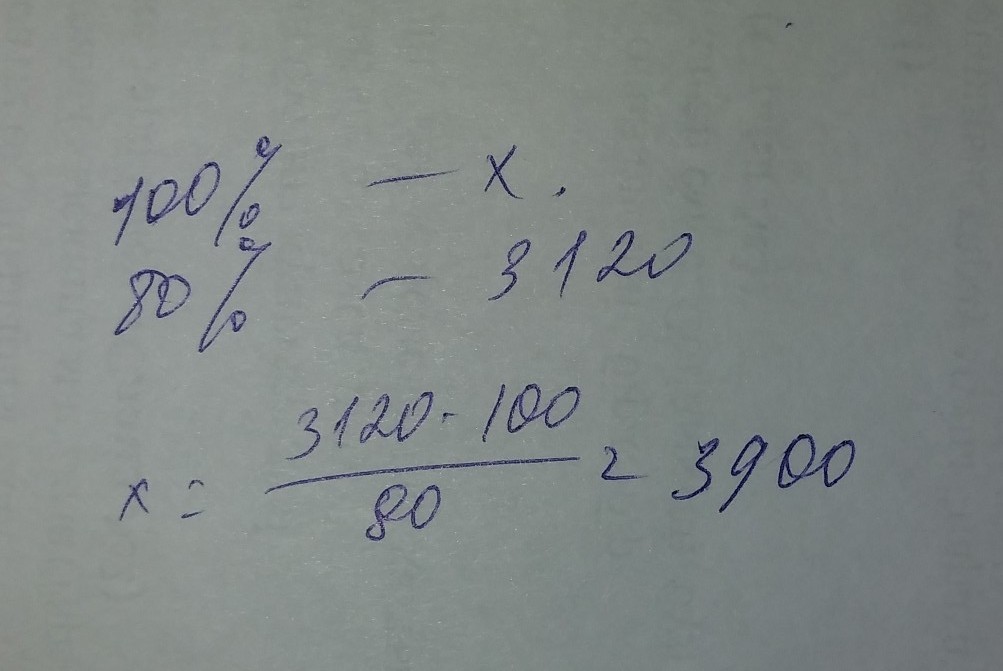 ЦЕНА АВИАБИЛЕТА БЫЛА ПОНИЖЕНА НА 20 ПРОЦЕНТОВ И СОСТАВИЛИ 3120 РУБЛЕЙ. КАКОВА БЫЛА ЦЕНА АВИАБИЛЕТА ДО ПОНИЖЕНИЯ ЦЕНЫ?
