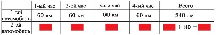 Ответ:1) Из одного пункта два автомобиля выехали одновременно в одном и том же направлении. Скорость первого автомобиля 60 км/ч. Через 4 часа первый автомобиль отстал от второго на 80 км. Найдите скорость второго автомобиля. Решите задачу, заполнив таблицу в тетради.