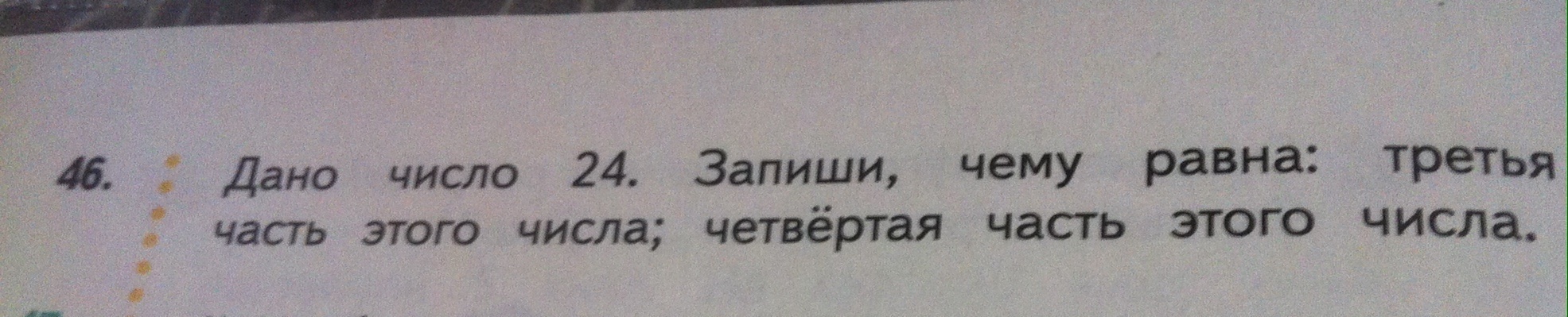 1.)24:3=8- 1/3 часть. 2.)24:4=6- 1/4 часть.