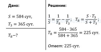 Задание: Определите звездный период Венеры, если ее нижние соединения повторяются через 584 суток.