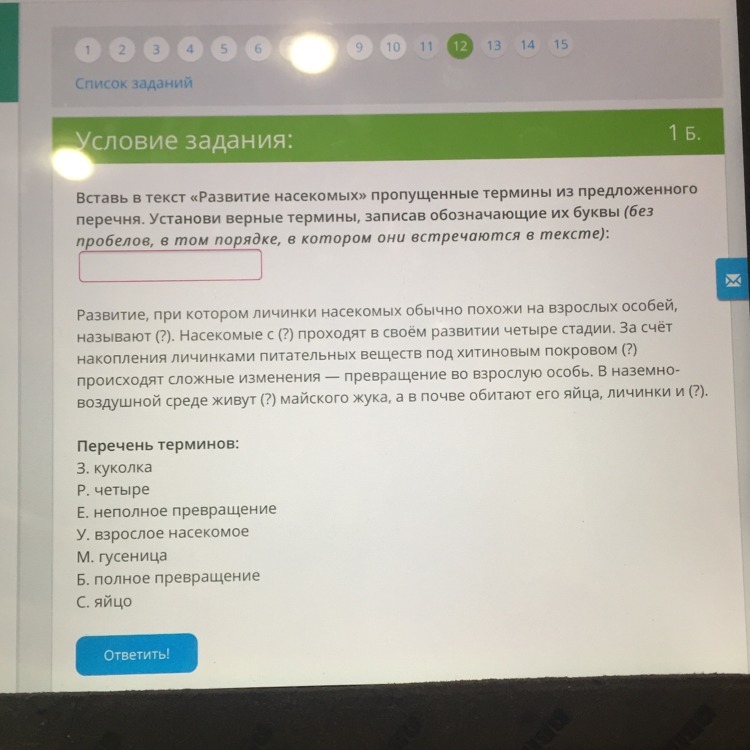 1) Развитие, при котором.....НЕПОЛНОЕ ПРЕВРАЩЕНИЕ.