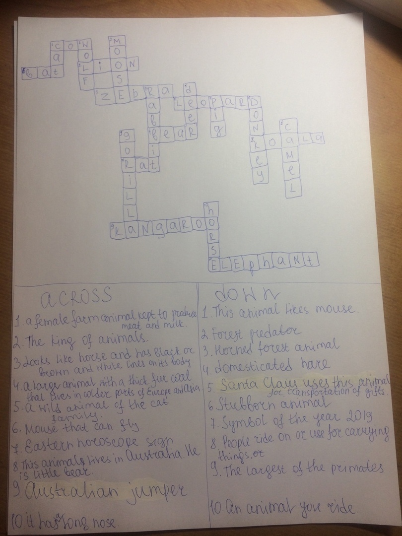 Сделайте пжлст кроссворд на тему:Животные!!!!Минимум 20 номеров и с вопросами!!!!На английском срочно надо!Можете прислать фотку или написать даю 20 баллов!