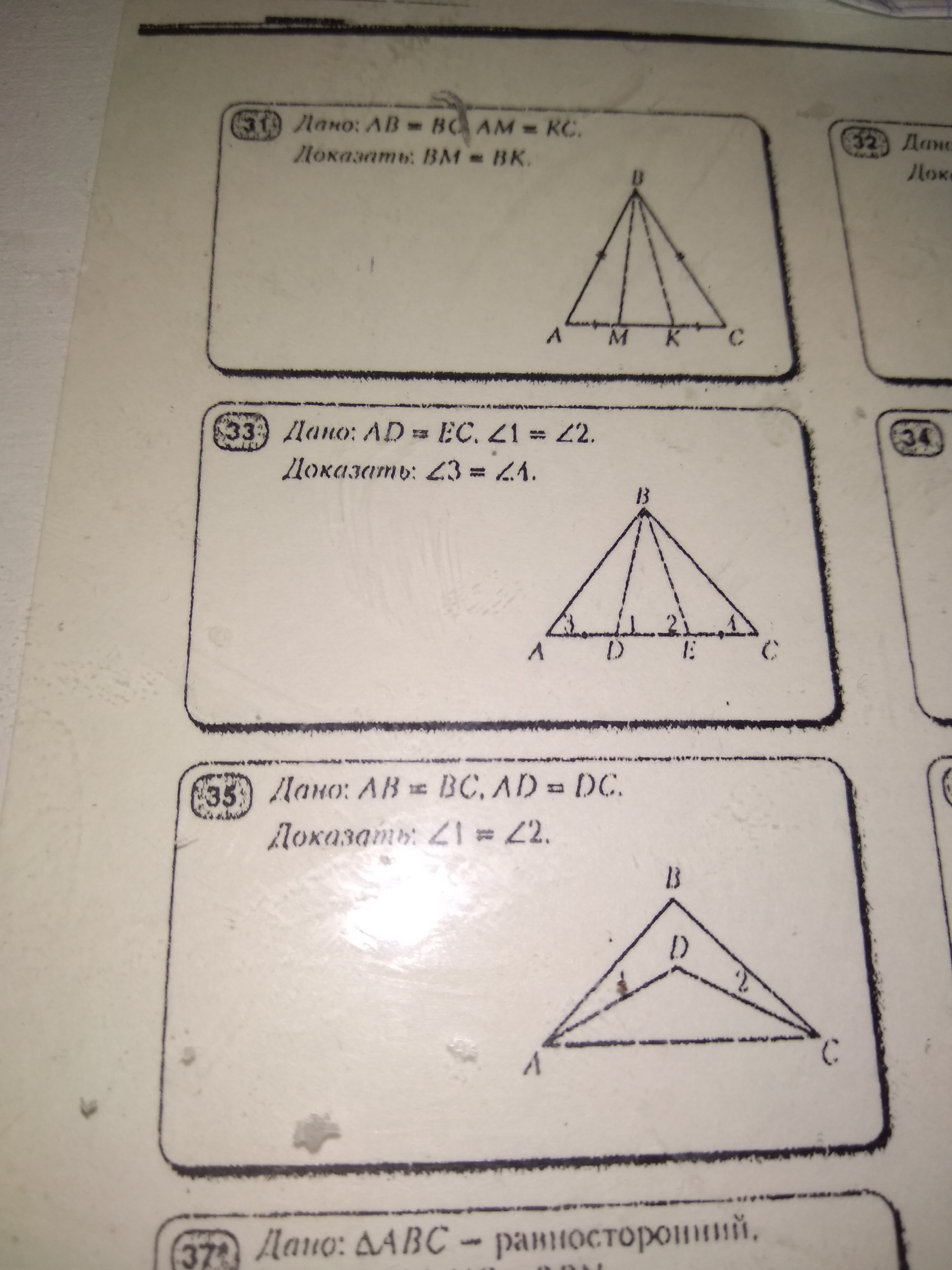 Нам известно, что угол 1 равен углу 2 отсюда следует что стороны DB и EB равны (по свойству равнобедренного треугольника) а так как эти стороны равны отсюда следует что треугольники ABD и CBE равны (по двум сторонам) и отсюда следует что углы 3 и 1 равны (по свойству равенства треугольников)