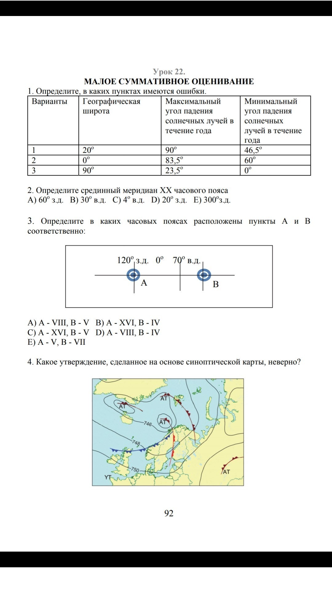 1. 1 вариант - 45*, 2 вариант - 0*, 3 вариант - 23, 5*
