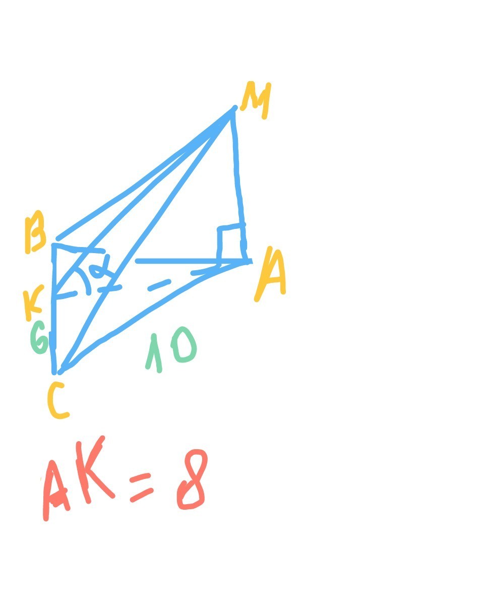 Так як АМ - перпендикуляр до площини основи, то трикутник МАК - прямокутний