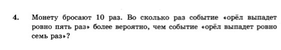 Вероятность того, что выпадет 7 "Решка" из 10 подбрасываний