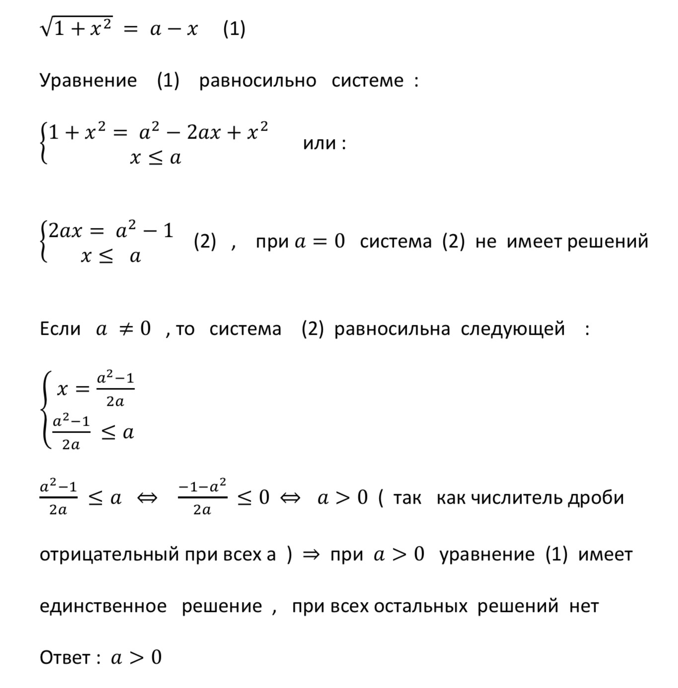 20 баллов!!! Найти все значения параметра a, при которых уравнение √1+x²=a-x (1+x² под единым квадратным корнем) будет иметь решение