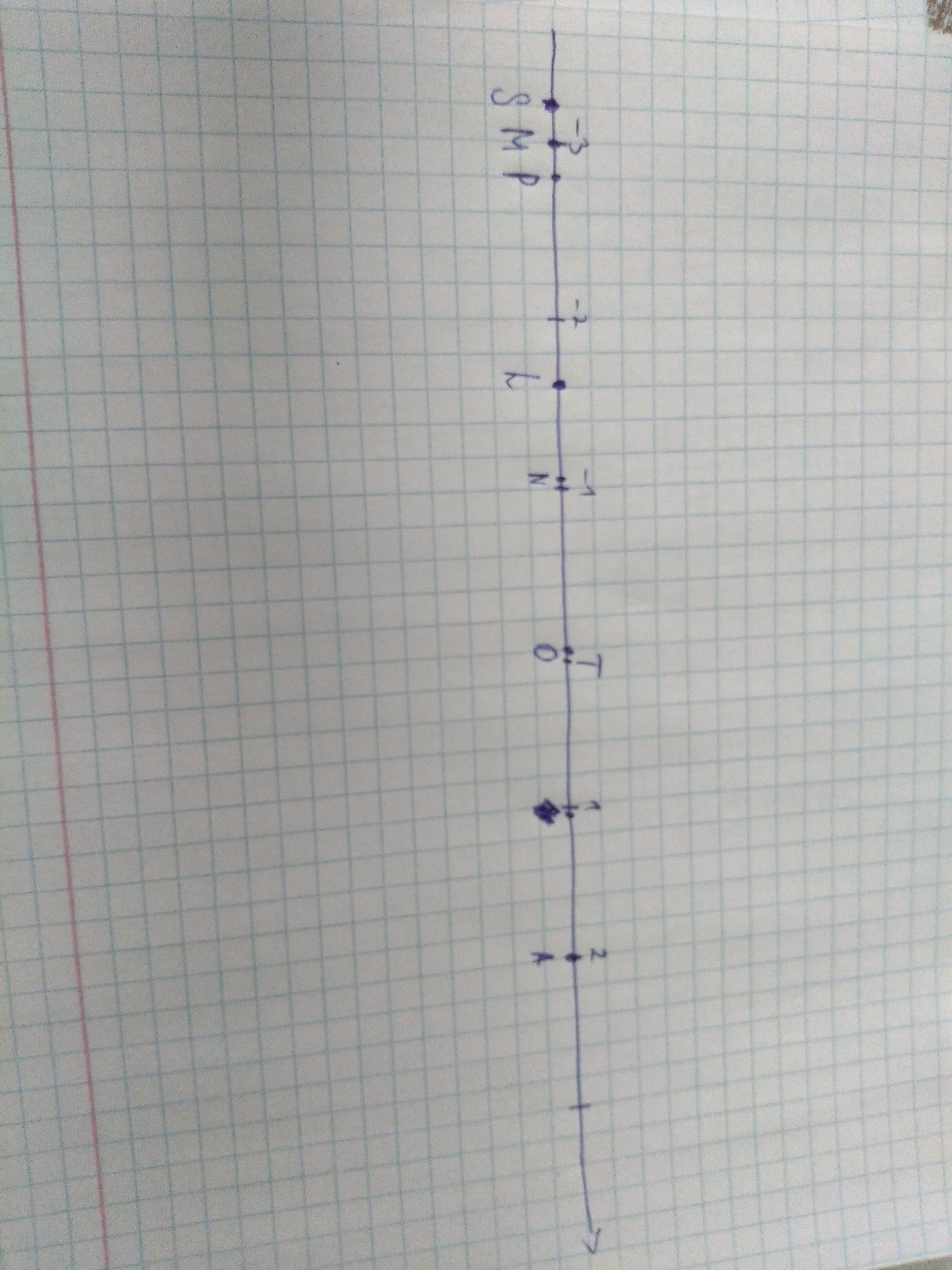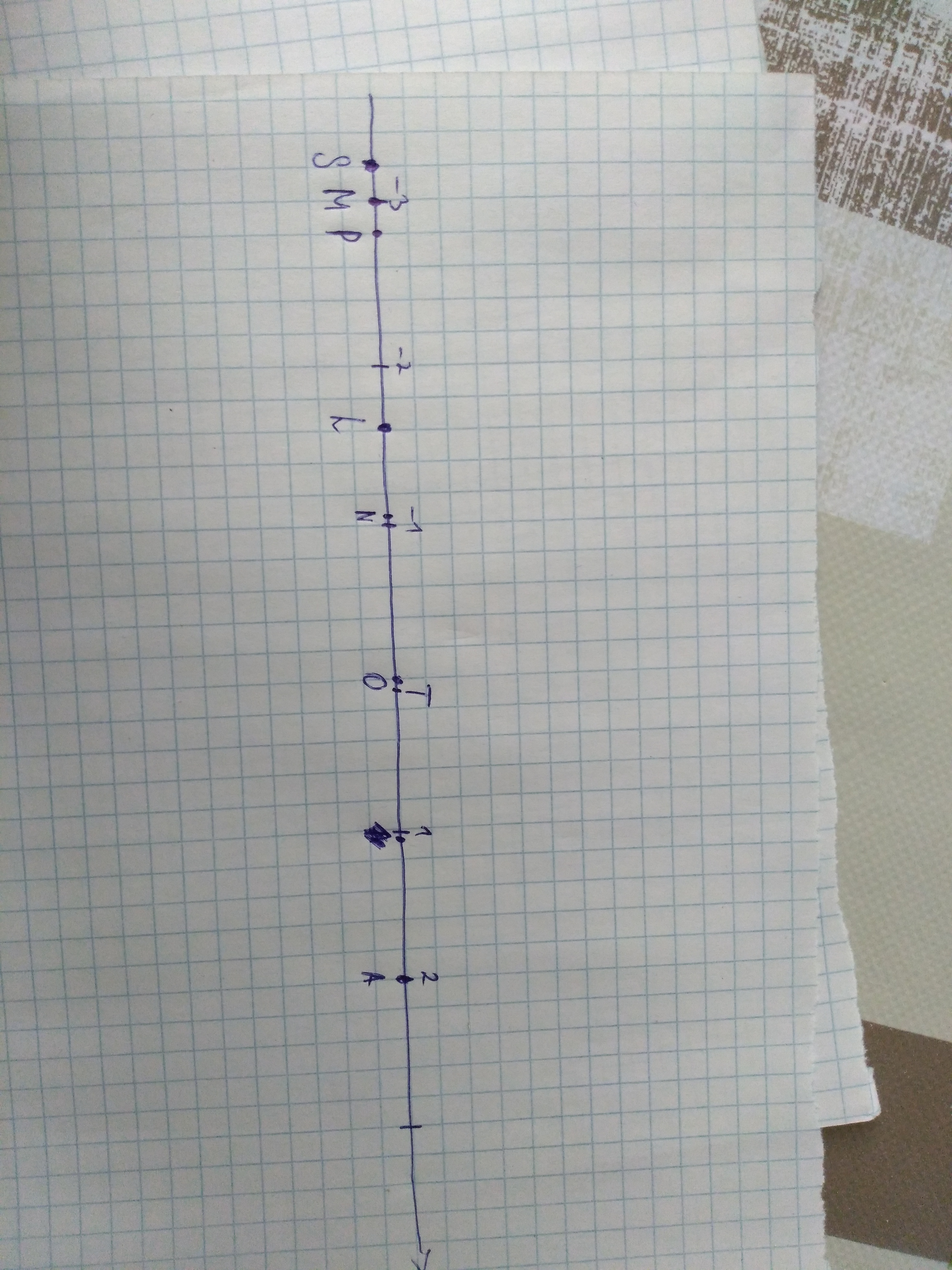 Начертите координатную прямую, приняв за единичный отрезок длину пяти клеток тетради. Отметьте на ней точки А(2), М(-3), S(-2,6), P(-2,4), N(-1целая1/5), T(1/5),L(-1,8)
