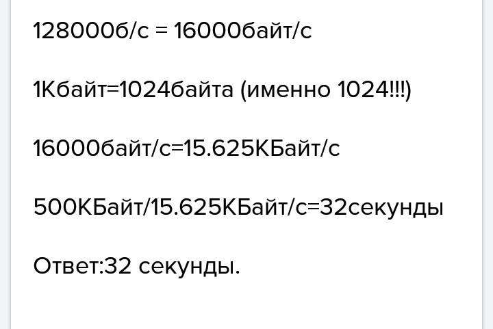 №9 пропускная способность канала связи равна 128 000 бит/с сколько времени займёт передача файла объёмом 500 Кбайт по этому каналу