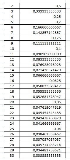 Переведите в десятичных дроби дроби от 1/2 до 1/30 (1/2, 1/3, 1/4 и тд). Ответы найти делением в столбик, можно на листочке написать чтобы понятней было. Даю 20 баллов