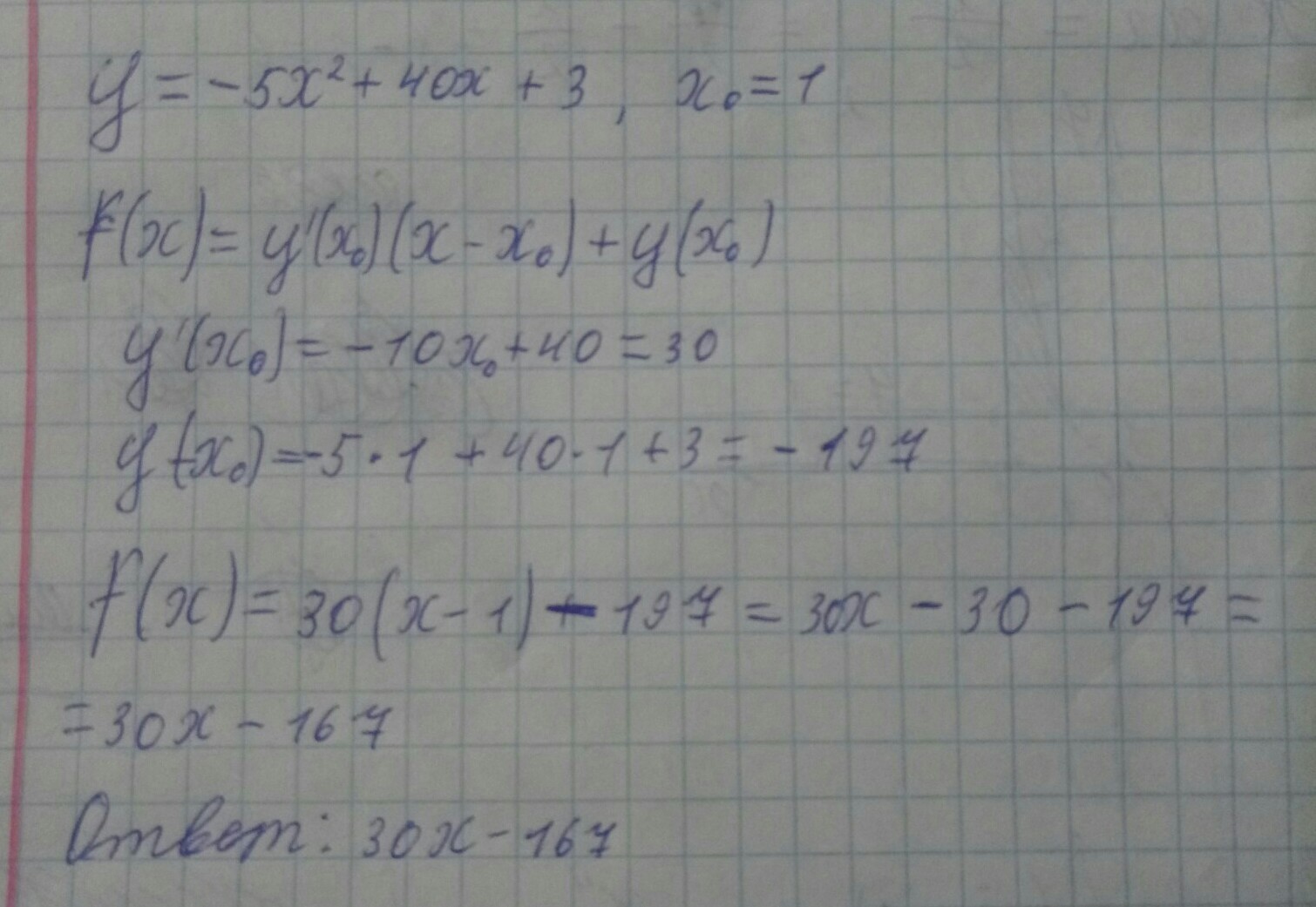 Составить уравнение касательной и нормали к графику функции y=-5х^2+40х+3 в точке х=1. 25 БАЛЛОВ ХЭЭЭЭЛП