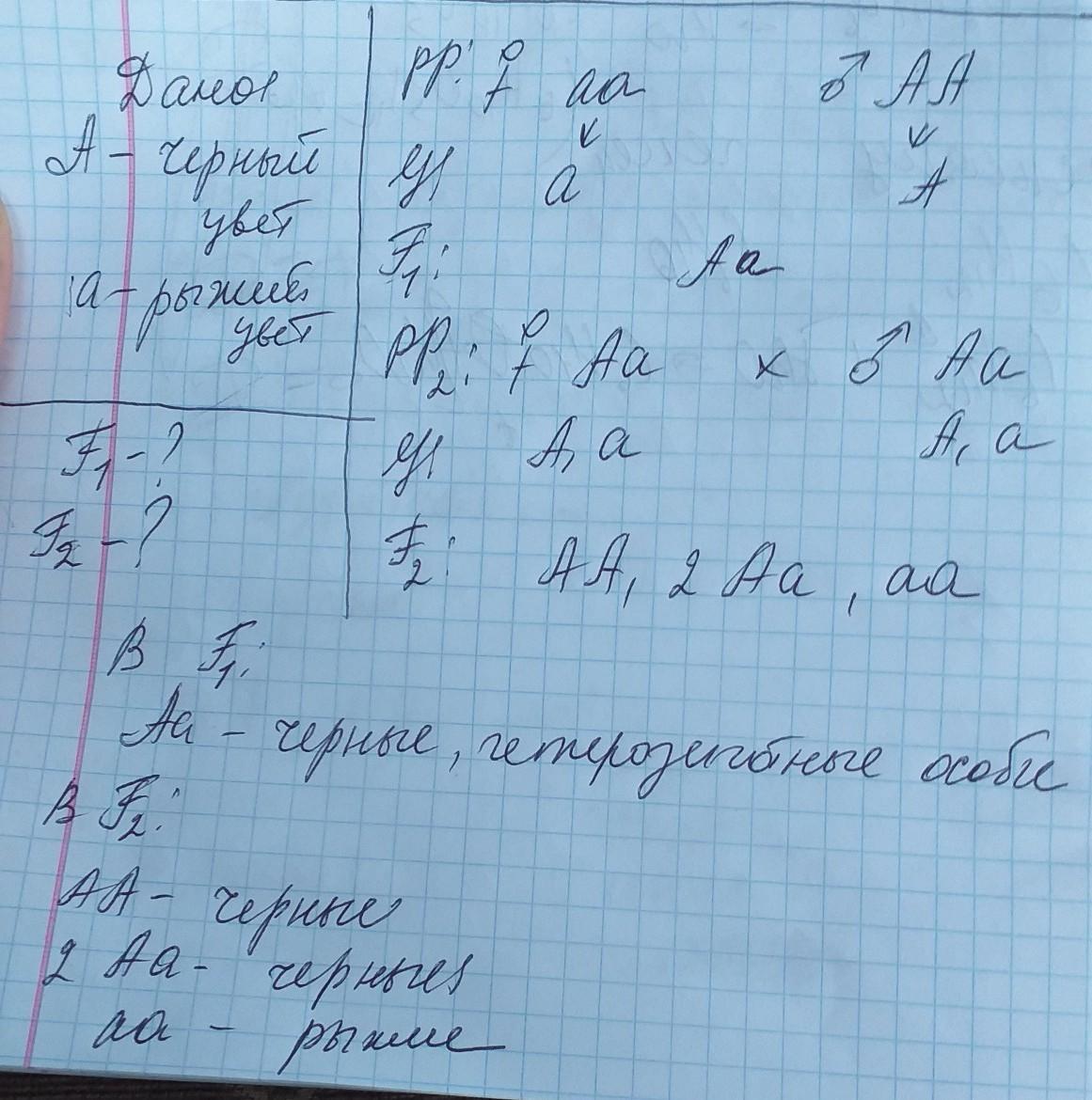 Какое потомство можно ожидать от скрещивания черного гомозиготного коты и рыжей кошки в первом и втором поколении?