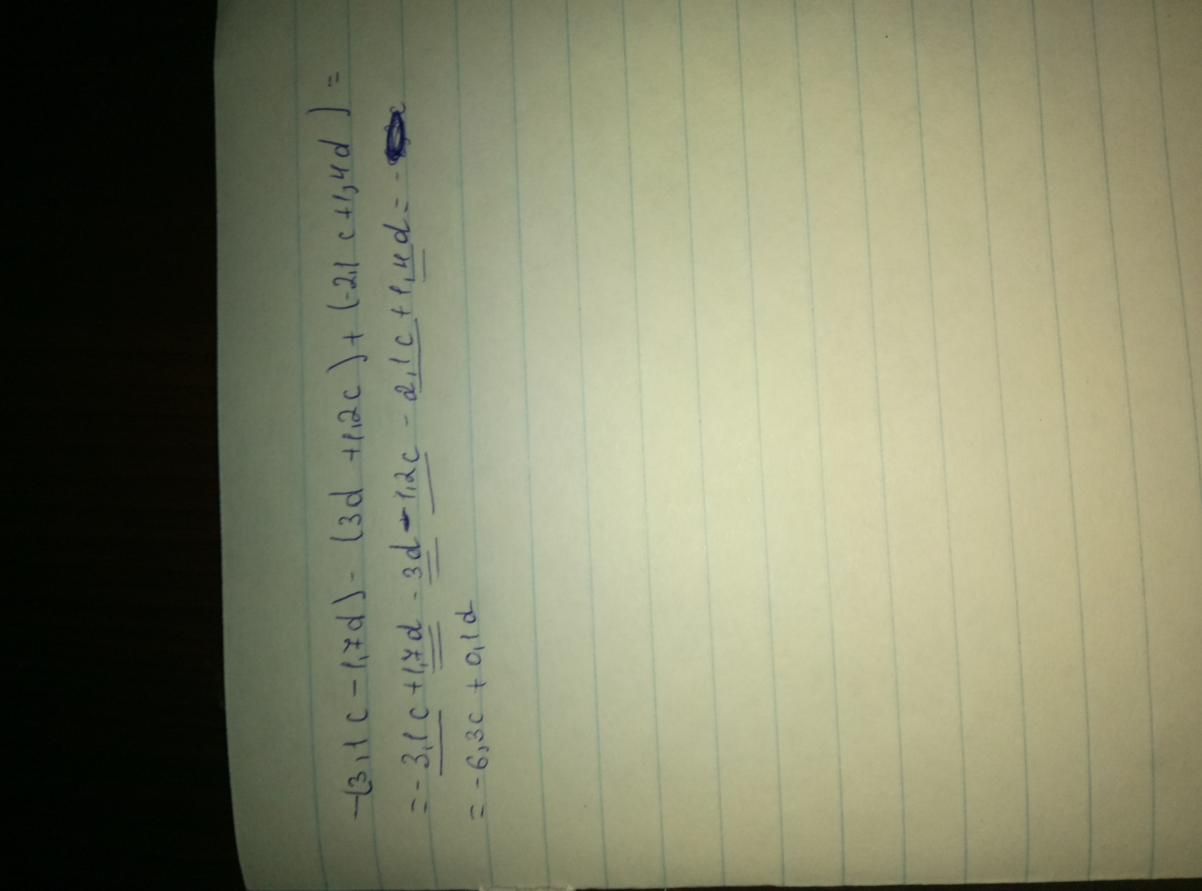 -(3,1c-1,7d)-(3d+1,2c)+(-2,1c+1,4d) жақшаларды ашып, ұқсас қосылғыштардың біріктір. Помогите плиз