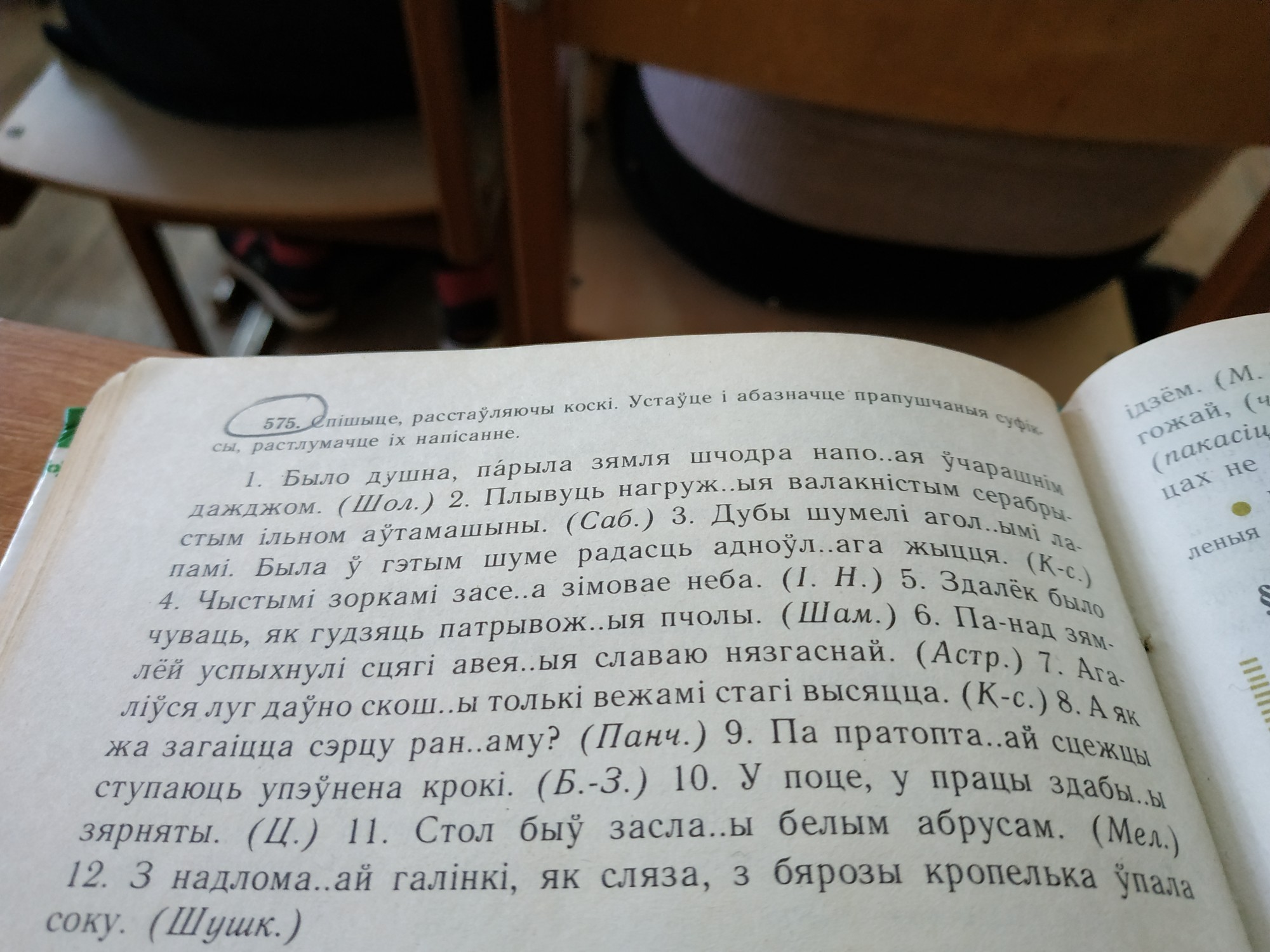 Напоеная(ен), нагружаныя(ан), засеяна(Ян),патрывожаныя(ан),авеяныя(н),скошаны(ан),раненаму(ен), пратоптанай(н),здабыты(т),засланы(н), надломанай(н)
