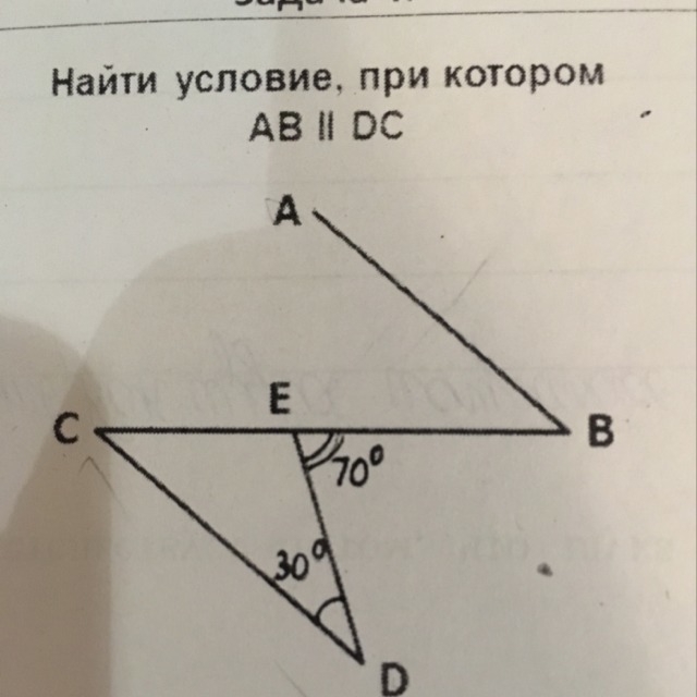 Если AB||CD, то ∠B=∠C. ∠C=180°-30°-(180°-70°)=40° ⇒∠B=40°