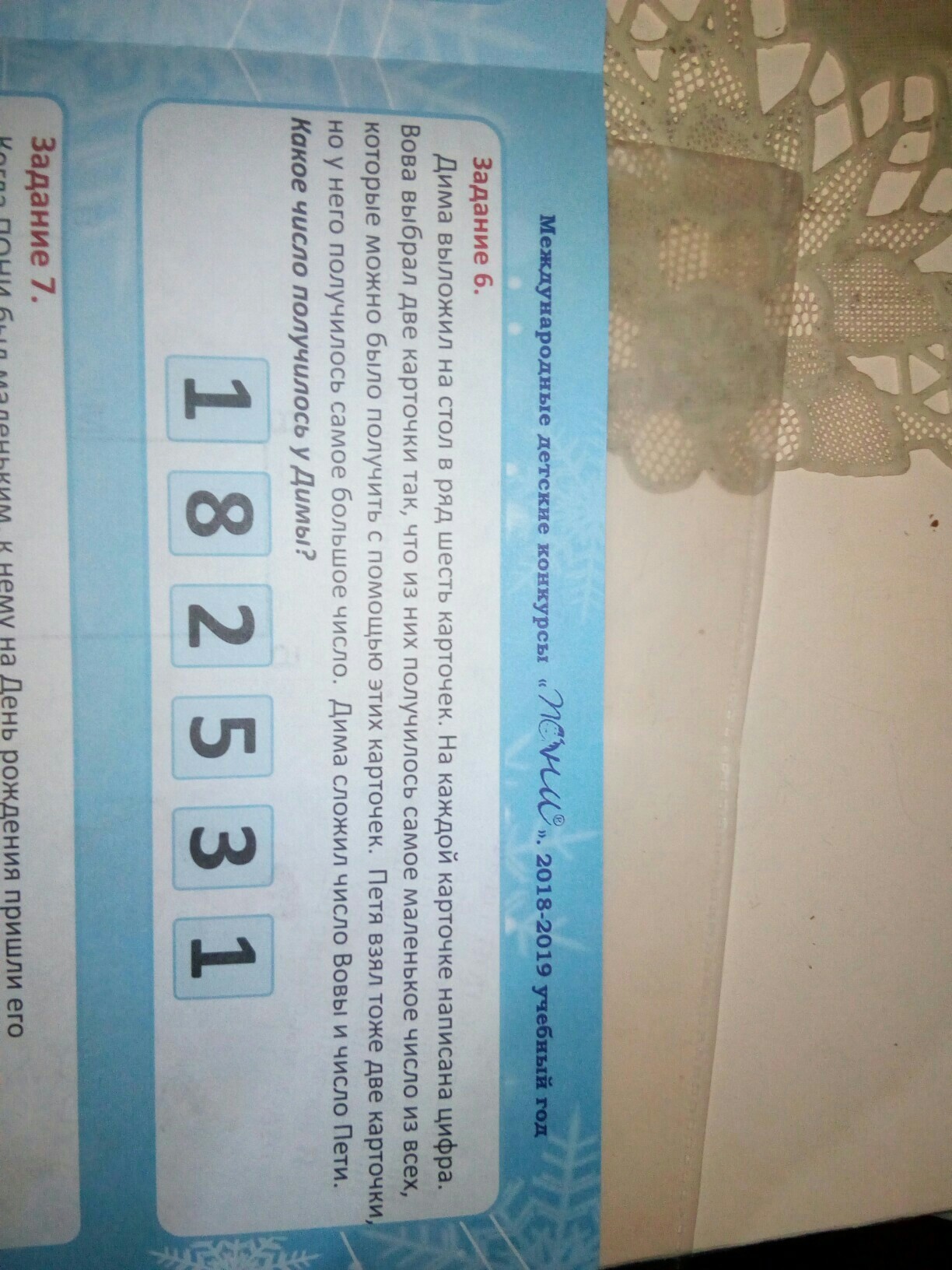 т.к. у Вовы получилось самое маленькое число при сложении двух карточек, то получается у него были две карточки с цифрами 1 и 1.