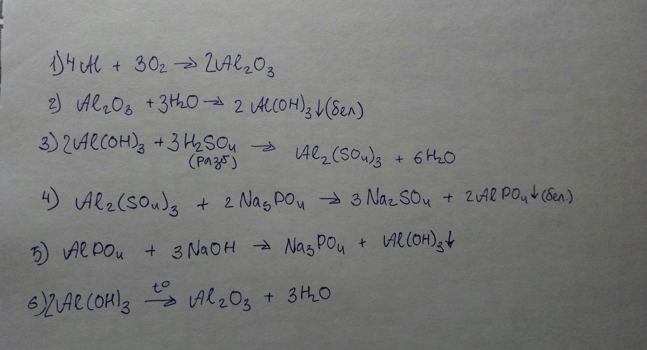 Al => Al2O3 => Al(OH)3 => Al2(SO4)3 => AlPO4 => Al(OH)3 => Al2O3