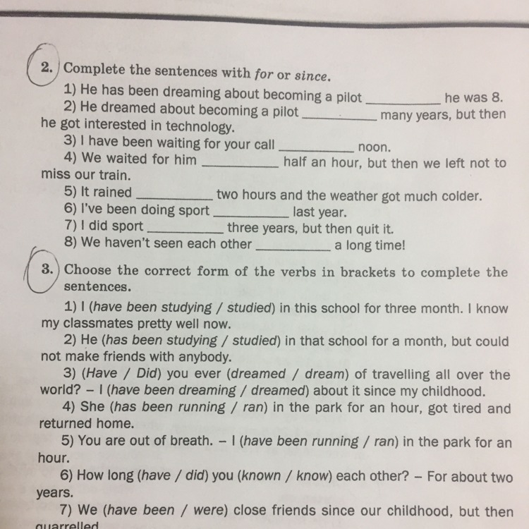 2 1 since 2 for 3 since 4 for 5 for 6 since 7 for 8 for