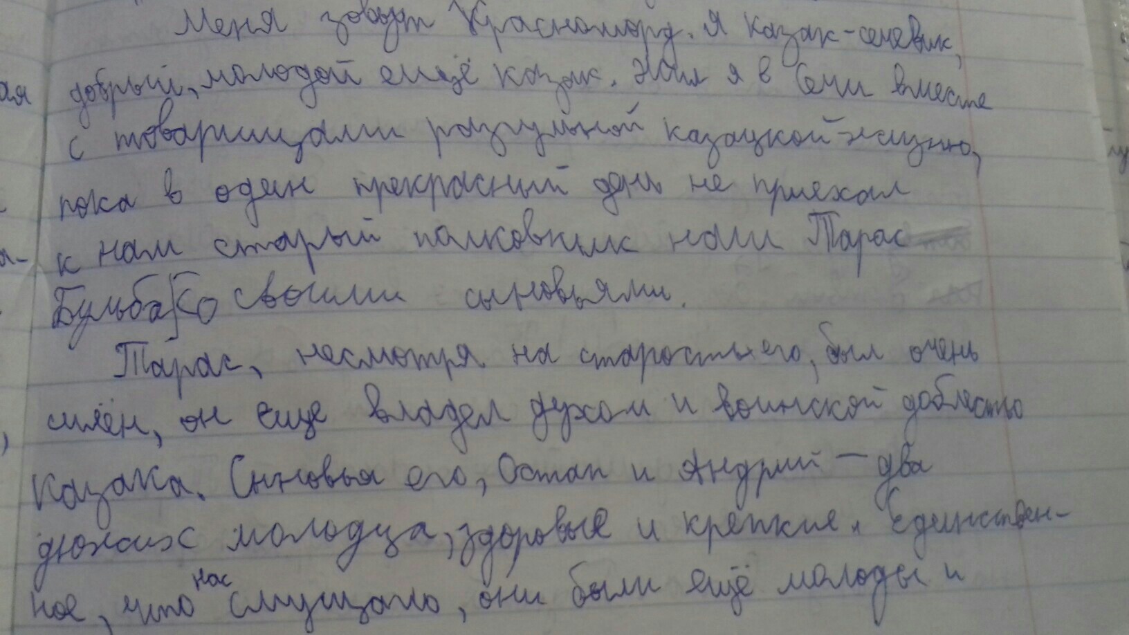 Надо написать рассказ повествование от лица казака (Этого казака надо придумать и описать его внешность и подвиги). Этот казак должен рассказать, что он думает о Тарасе Бульбе. Какие подвиги Тараса его поразили.