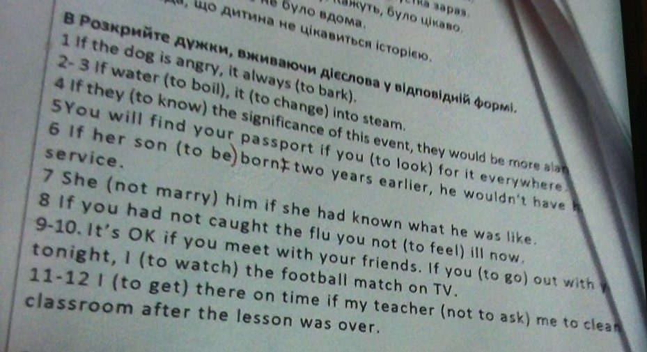 1 barks 2 boils- changes 3 boils- will change 4 knew 5 look 6 had been 7 wouldn’t have been married 8 wouldn’t have felt 9 go- watch 10 go- will watch 11 would get - didn’t ask 12 would have got - hadn’t asked