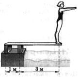 Найдите направления и числовые значения сил нормальной реакции опоры в местах крепления трамплина (рисунок). Масса прыгуна 60кг, массой однородного трамплина можно пренебречь. (Через момент силы)