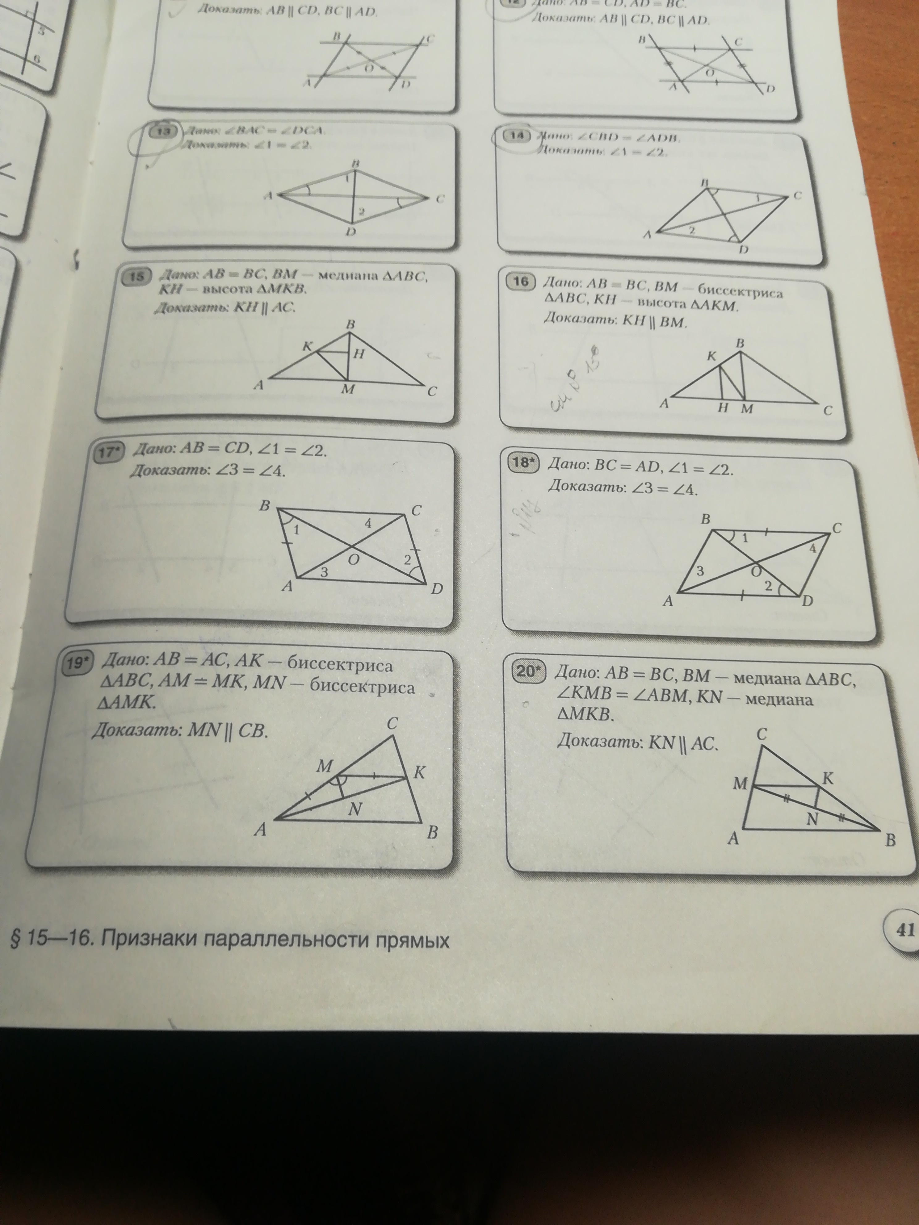 в 17 задаче угол 3 = углу 4 потому, что они накрест лежащие